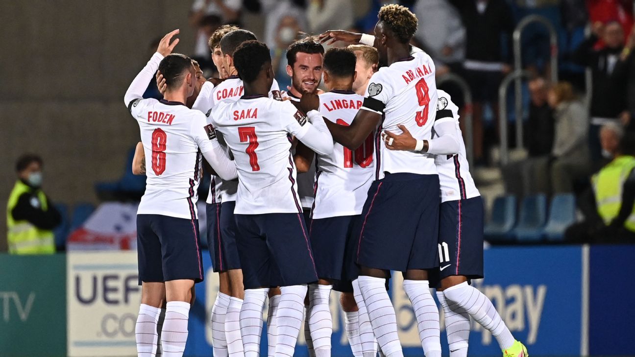 Five different players are on the scoresheet for England as they win 5-0 vs. FIFA World Cup Qualification - Europe. The match starts at 2045 on 9 October 2021.